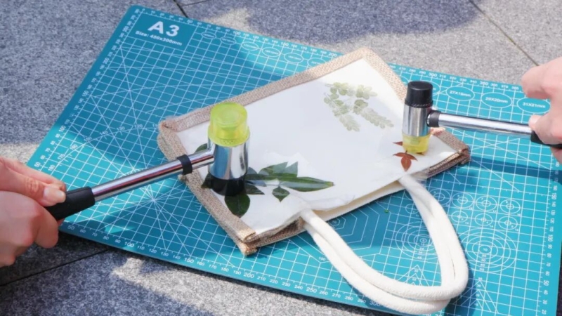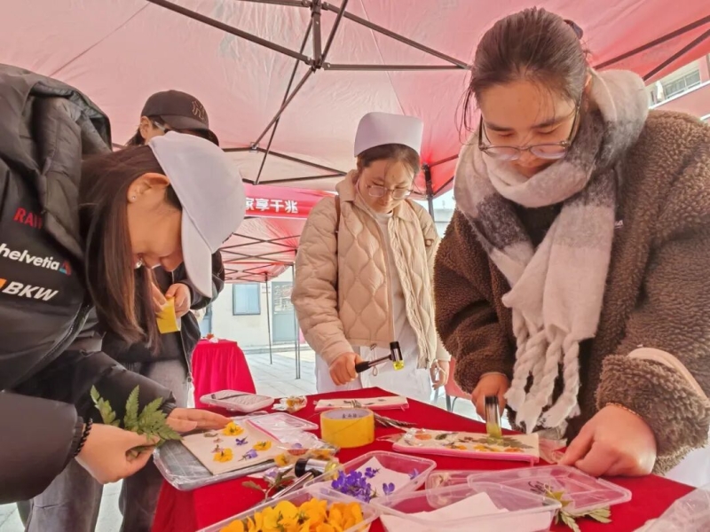 以草木为笔,揽春光入卷。师生们化身“自然匠人”,通过敲打、印染等趣味环节,将花草枝叶的自然纹路定格于画布之上,在指尖流转间读懂自然诗意,让非遗韵味与春日生机撞个满怀。