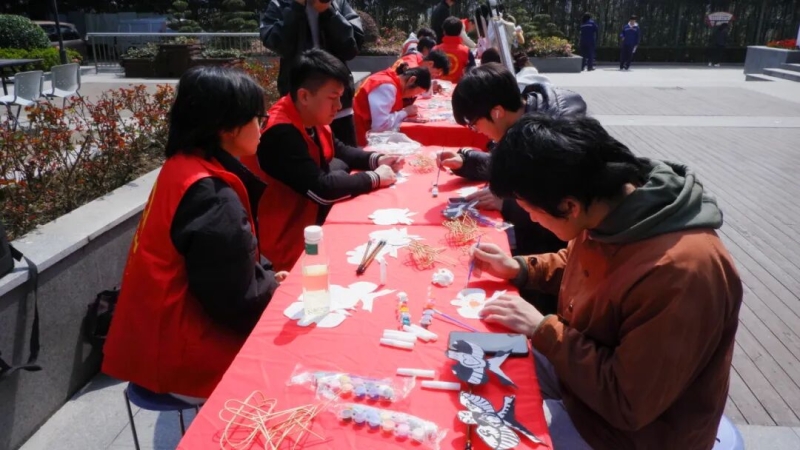 素鸢载梦,笔墨传情。风筝绘画活动现场创意十足,师生们热情高涨,以素鸢为纸,以笔墨寄情,肆意挥洒创意色彩,勾勒心中愿景,用画笔装点春日,用文字寄托期许,让每一只风筝都承载着青春向往与绿色期许,在创作中邂逅春日浪漫。